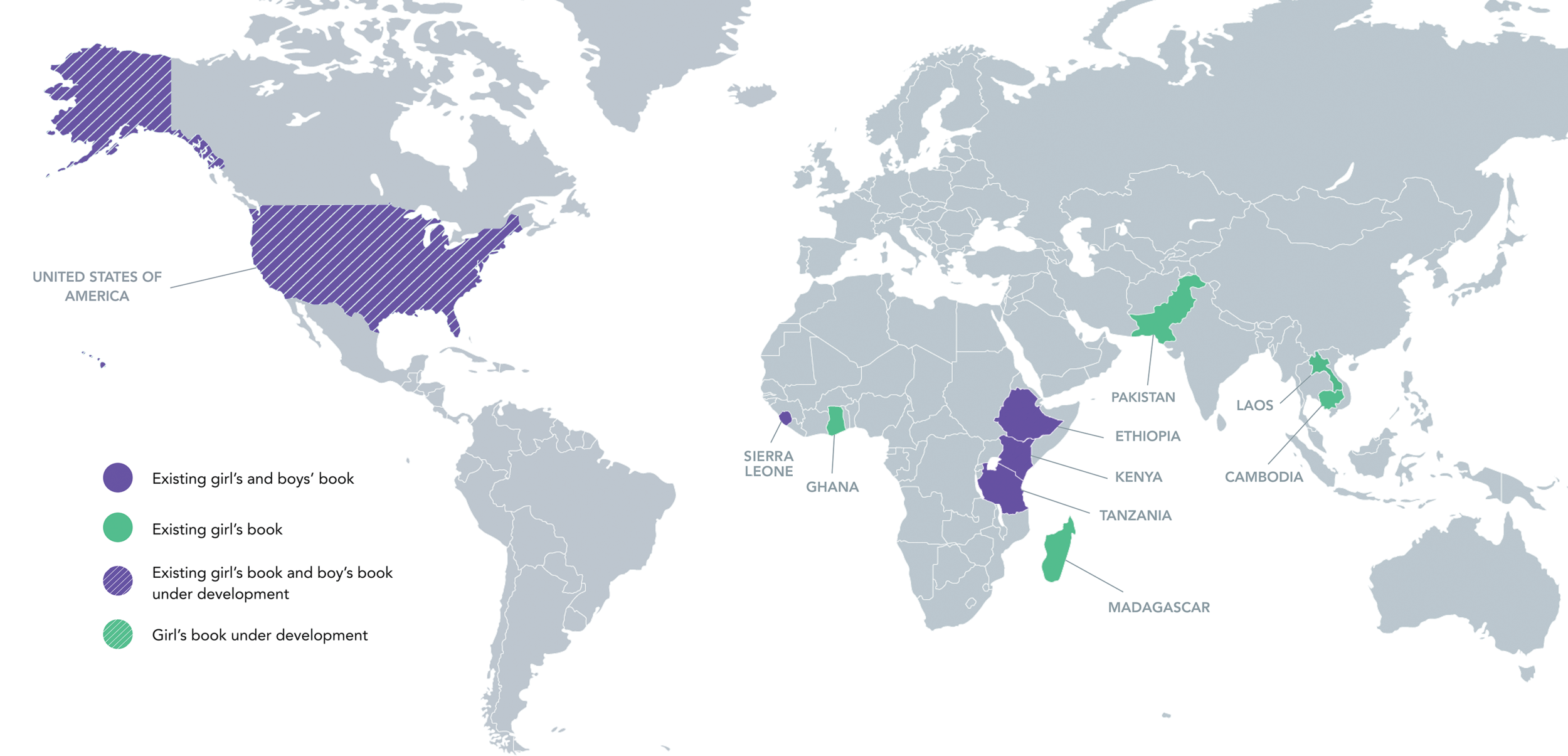 Different distribution models include, for example, in Cambodia, the Ministry of Education and UNICEF partnering each year to distribute our books to school libraries throughout the country, while in Tanzania, a child-focused NGO ordered copies for school clubs, with girls and boys reading and discussing the books in small groups. Sometimes our books are distributed directly to girls and boys to take home and read, sharing with their parents, sisters and brothers, and girls and boys who are out of school.